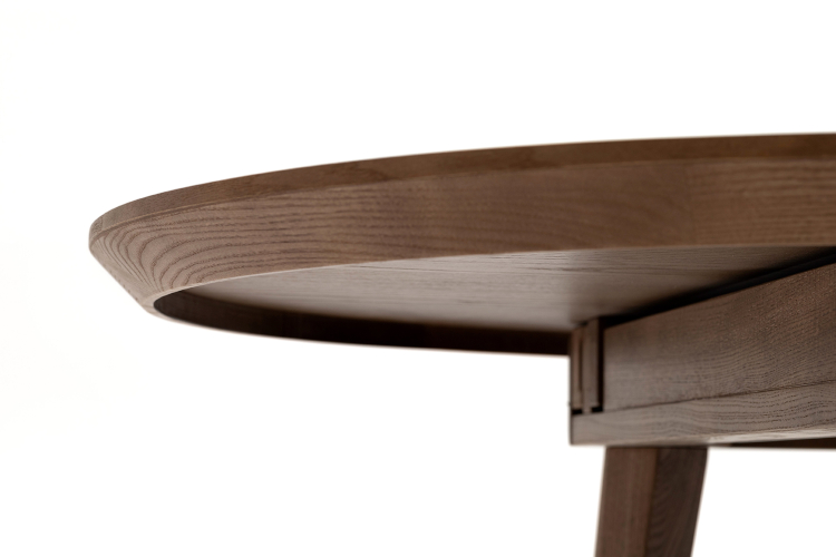 Стол выполнен из высококачественных натуральных материалов: дерева и шпона ясеня. Поверхность покрыта шпоном ясеня, что подчеркивает естественную текстуру и теплоту древесины, придавая изделию благородный и экологичный вид.